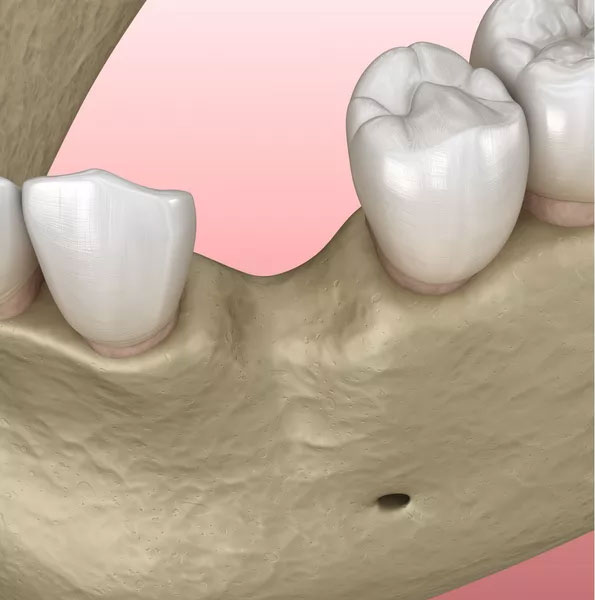 しっかりと咬み合わせを考慮しないままブリッジにした場合,土台となる両隣の土台となる両隣の歯には大きな負担が掛かることでグラグラし始め、将来的に抜歯しなくてはならないケースが多く存在します。