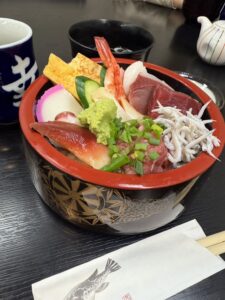 往診の昼食で海鮮丼を食べました!ここの海鮮丼は、新鮮でとても美味しいです☺️ 魚や貝類が好きなので、毎週行きたいくらいです!皆さんも武蔵小金井駅の駅前にありますのでぜひ足を運んでみて下さい!!